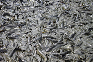 Ini dia para lele yang sudah siap dipanen, ukuran seperti ini memang menjadi ukuran yang pas bila dijadikan lele konsumsi. Biasanya para pembudidaya lele berbeda-beda dalam patokan untuk siap dipanen, ada kalanya berdasarkan usia lele sekitar 2 bulan atau 60 hari, ada juga tergantung banyaknya pelet yang dihabiskan, serta kadang hanya sekilas melihat ukuran tubuh lele tersebut.
